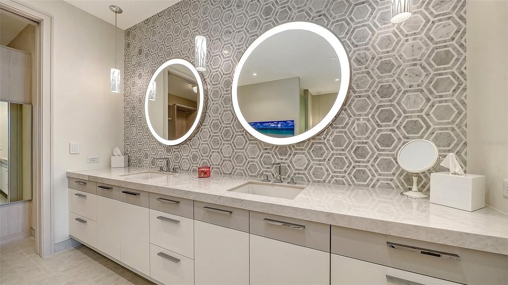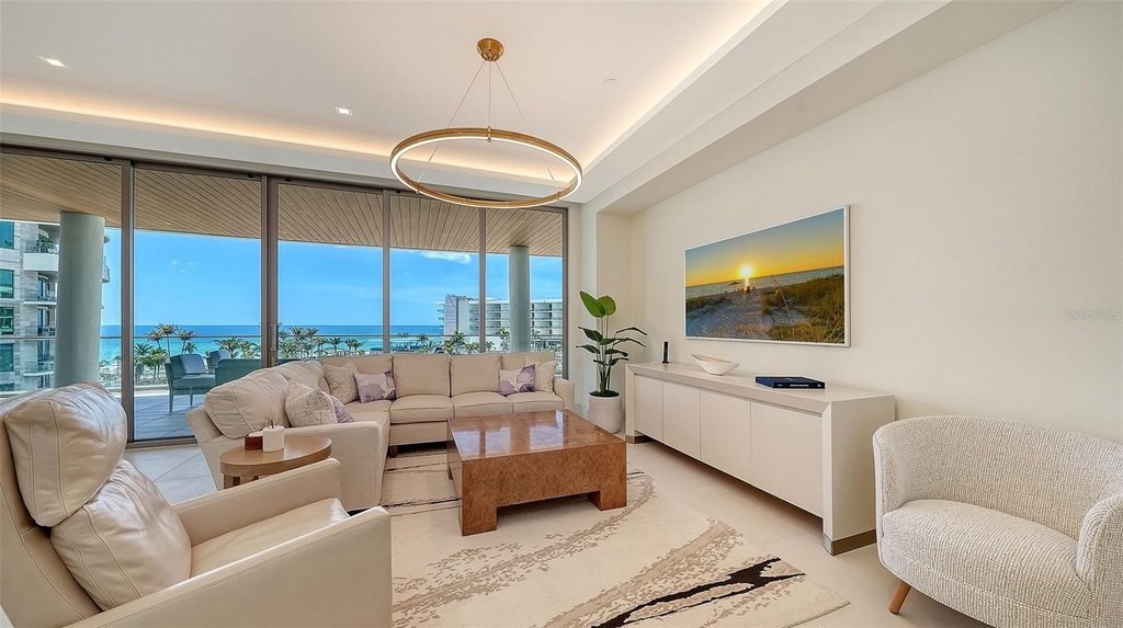 Perched above the shimmering shoreline, this exquisite two-bedroom, two-and-a-half-bath residence at The St. Regis Longboat Key Resort offers breathtaking panoramic views of the turquoise waters of the Gulf of Mexico and the resort's serene saltwater lagoon. Designed for both refined comfort and effortless coastal living, the residence showcases exceptional craftsmanship and sophisticated design throughout. A defining feature of this residence is the expansive private terrace, where all principal rooms open seamlessly to the outdoors. Complete with a gas grill, this exceptional outdoor living space provides sweeping views of the Gulf of Mexico and the tranquil lagoon-creating the perfect setting for al fresco dining, entertaining, or simply enjoying spectacular sunsets over the water. The gourmet kitchen is a true showpiece, appointed with sleek Poggenpohl cabinetry and premium appliances including Wolf double ovens, a gas cooktop, microwave, icemaker, and wine refrigerator. A generously sized island provides abundant built-in storage, making the space as functional as it is beautiful. This thoughtfully designed floor plan features two luxurious owner's suites. The primary suite enjoys stunning views of the Gulf of Mexico and opens directly onto the large terrace. The spa-inspired bathroom features a large double vanity with elegant lighted mirrors plus a separate makeup vanity, two private water closets, a seamless glass shower, and a freestanding soaking tub. Electronic sheers and blackout shades provide effortless ambiance and privacy, while a custom-built closet offers exceptional storage. The second owner's suite also captures captivating Gulf views and opens onto the terrace. Its spacious bath includes dual vanities with lighted mirrors, a water closet, and custom-built closets. Electronic sheers and blackout shades add both convenience and luxury. Additional highlights include a large laundry room with sink, cabinetry, and hanging rack, as well as an elegantly designed powder room for guests. Offered completely turnkey, the residence is beautifully furnished and enhanced with custom light fixtures throughout, creating a sophisticated yet inviting coastal retreat. Nestled within the first branded residential community and ultra-luxe 5 star resort on the Gulf of Mexico. The Residences at The St. Regis Longboat Key blend legendary service with the allure of a seaside getaway. Spanning over 17 acres with 800 feet of direct beachfront, this community offers unparalleled amenities, including the signature St. Regis Butler and Concierge services, a world-renowned St. Regis Spa, in residence dining. Resident only amenities include a clubhouse, fitness center, pool/spa and beach area. Enjoy your private resident only amenities, while having access to all the resort has to offer. Live like you are on vacation all year round!